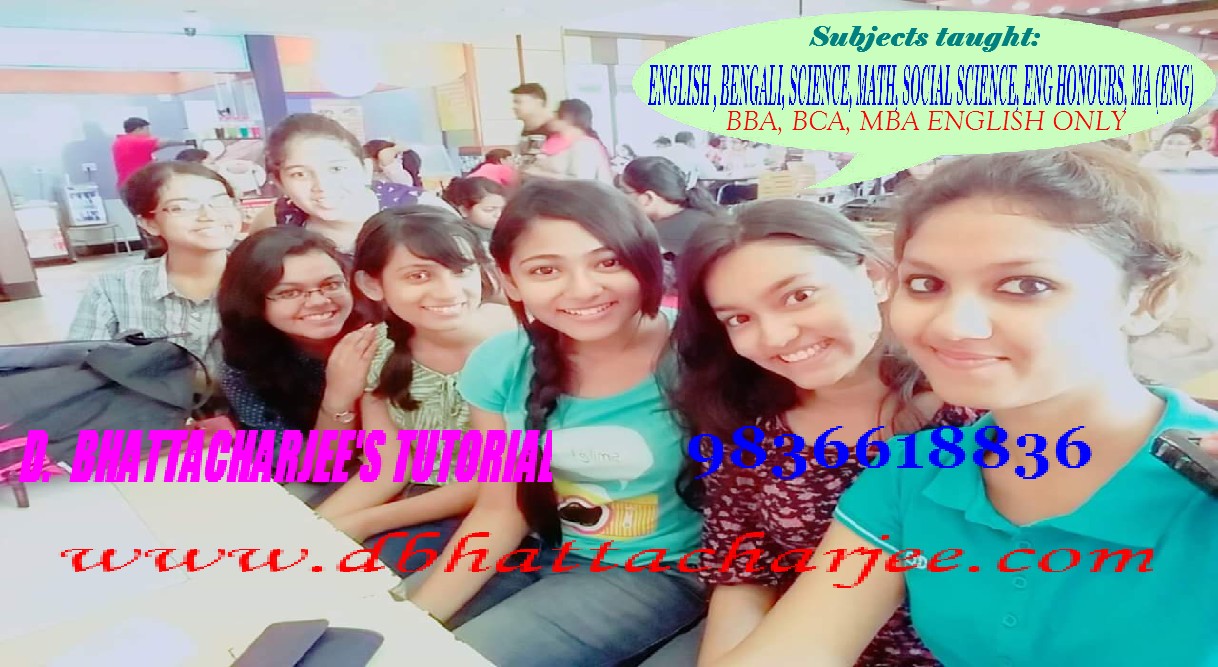 Methods: TEACHING Individually at Student's Home / at Tutor's place at Kestopur / Online : One hour & a Half per Class, Once A WEEK. Classes as ALLOTTED / MUTUALLY AGREED. ( NOTES, TESTS GIVEN; ANSWERS CHECKED, PROGRESS APPRISED )